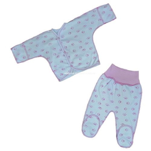 "МоёДитё" комплект распашонка + ползунки "Лапки" розовый "Гардения" КПИ020