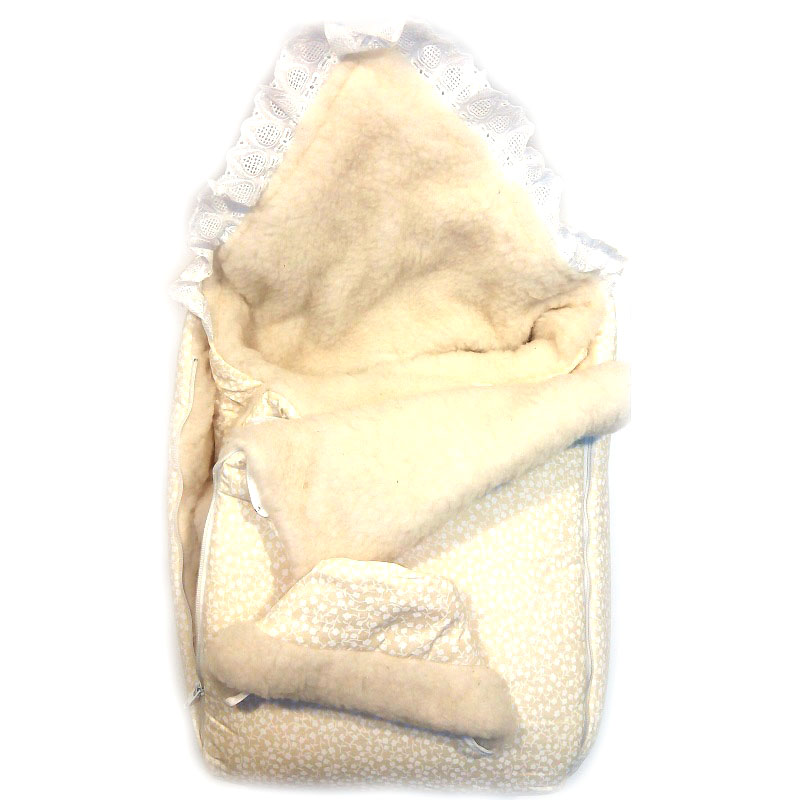 1. Меховой конверт с капюшоном и перед с удобными молниями.