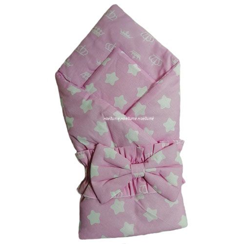 Одеяло выполнено из ткани с двумя разными рисунками, размер 100*100 см. Одеяло можно использовать для укутывания новорождённого, воспользовавшись для закрепления бантом на резинке, который идёт в комплекте.