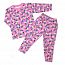 Пижама изготовлена из набивного футера с начёсом. Кофточка прямого кроя, без воротничка, с длинным рукавом без манжеты. Штанишки на резинке, снизу также без манжеты. Набивные рисунки на детскую тематику. Расцветки в каждой партии могут отличаться.